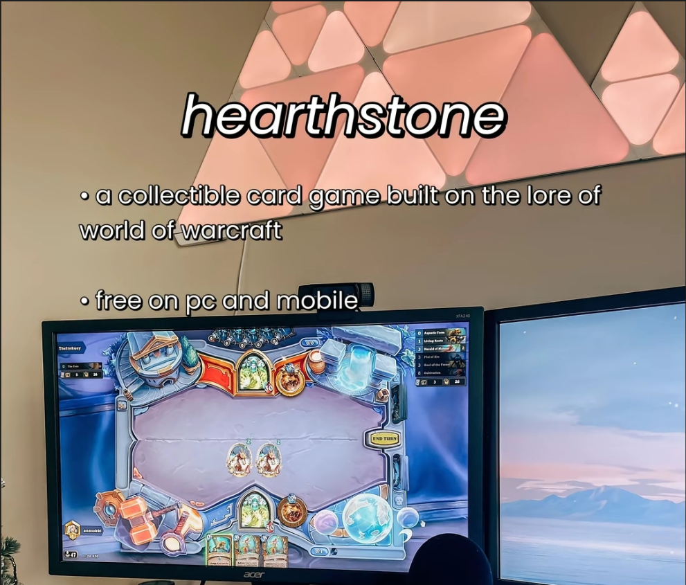 I play Hearthstone on a daily basis! This is a collectible card game, based on the lore of World of Warcraft (which you don’t need to know in order to play). Build unique decks and climb the ranks! There are also lots of different modes within the game, so you can find what you like best.