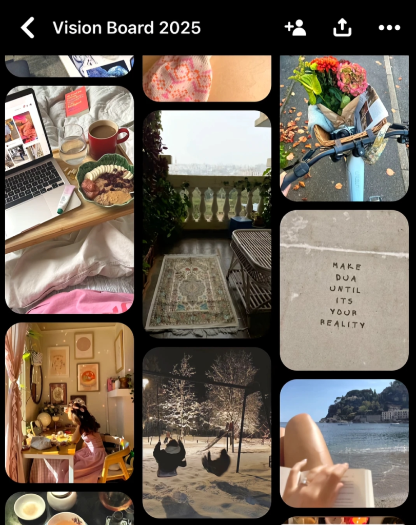 I created my Pinterest board on my laptop and added all the pins I wanted to use and then moved to my phone (the collage feature is only on mobile) to create the vision board.